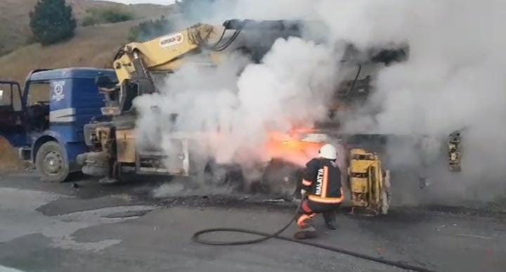 Malatya’nın Pütürge ilçesinde iş makinesi taşıyan çekicide çıkan yangın itfaiye tarafından söndürüldü.