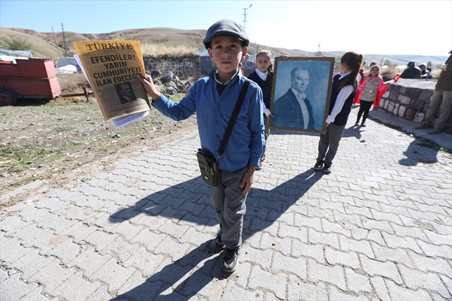 Bir öğrenci de "Efendiler yarın Cumhuriyeti ilan edeceğiz." yazılı temsili gazeteyi "Yazıyor yazıyor, yarın Cumhuriyeti ilan edeceğiz yazıyor." diyerek köylülere dağıttı.
