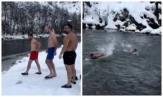 Tunceli’de etkili olan dondurucu soğuklara rağmen 3 arkadaş, sıra dışı bir cesaret örneği sergiledi. Hava sıcaklığının eksi 10 dereceleri gördüğü günlerde şortlarını giyen gençler, karla kaplı alanı aşarak Munzur Nehrine girdi. Karların arasından suya giren arkadaşların buz gibi suda yüzdüğü anlar cep telefonu kameralarıyla kaydedildi. Görüntülerde gençlerin soğuğa aldırış etmeden eğlendiği, yüzme sırasında kahkahalar attığı görüldü. Kısa süre sonra sudan çıkan grup, "su kaynıyor" diyerek şakalaştı. Sosyal medyada paylaşılan görüntüler, kısa sürede ilgi gördü.