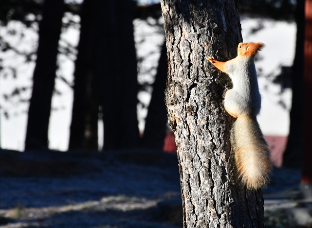 Hamamlı köyü mevkisinde küçük göletler buz tuttu. Kızıl sincaplar ve bir kızıl tilkinin Acısu Deresi'ndeki piknik alanında yiyecek araması görüntülendi.