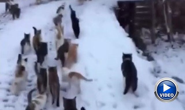 Soğuk havanın etkisini artırdığı bölgede, kar yağışı sonrası aç kalan kediler için harekete geçen duyarlı vatandaş, köy içerisinde kedileri isimleriyle çağırarak bir araya topladı. Kedilerin, isimlerini duyar duymaz vatandaşın etrafında toplanması dikkat çekti.