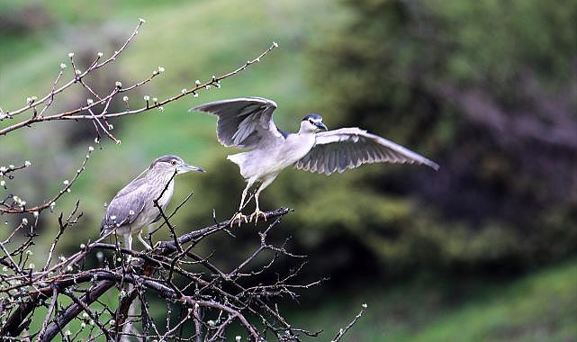 Kuşlar su kenarındaki ağaç dallarında ve kıyıda görüntülendi.