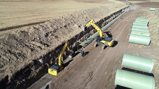 Yüklenici firmanın 150 personel ve 70 iş makinesiyle yürüttüğü ve 2027'de tamamlanması planlanan projenin birinci etabıyla ilk başta 167 bin dekar tarım arazisinin suya kavuşması hedefleniyor.