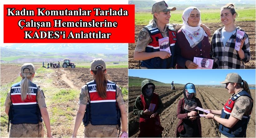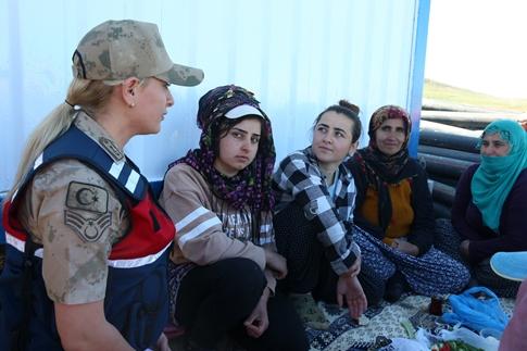 Kadınlara yönelik şiddet ve erken yaşta evliliğin engellenmesi için yoğun çaba sarf eden kadın komutanlar, Bitlis'te öğrencilerin yanı sıra tarlada çalışan kadınları da bilgilendiriyor.