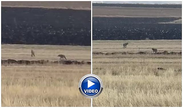 Susuz merkeze yakın tarım arazisine sürü halinde gelen kurtlar, cep telefonu kamerasına yansıdı. Görüntülerde arazide hareket eden kurtlar yer alıyor. Kurtlar bir süre sonra bölgeden uzaklaştı, o anlar vatandaş tarafından cep telefonuyla kaydedildi.