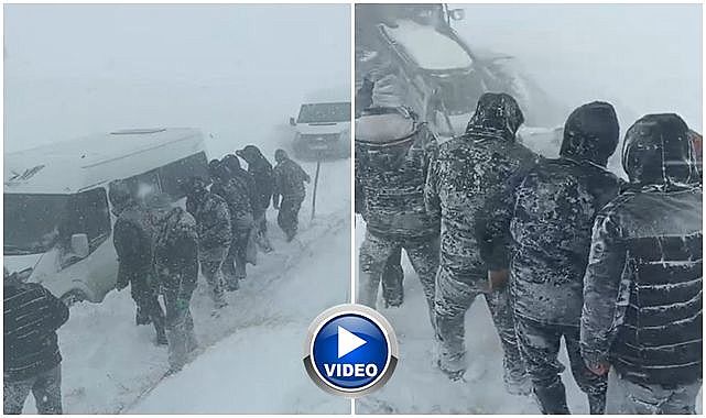 Hakkari'nin Yüksekova ilçesinde taziyeye gitmek için yola çıkan vatandaşlar, kar yağışı ve fırtına nedeniyle yolda mahsur kaldı.