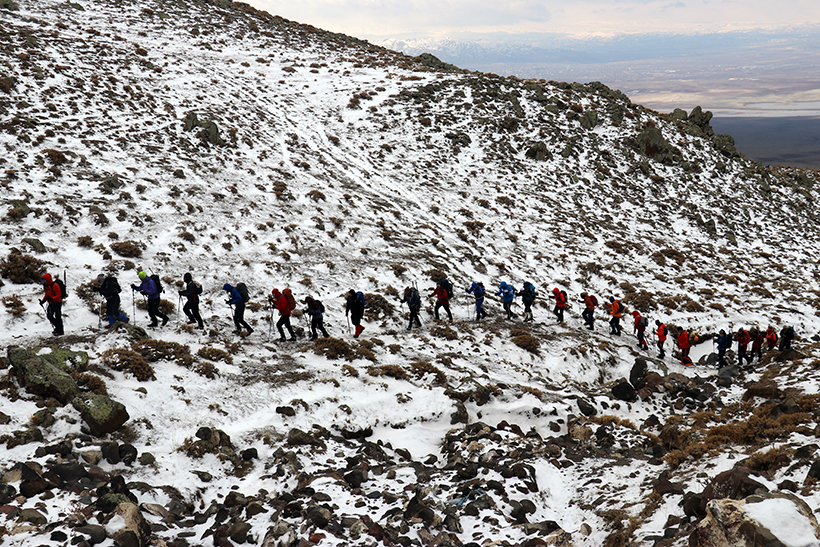 TDF'nin 2022 faaliyet programında yer alan "Ağrı Dağı Kış Tırmanışı" kapsamında 6 Mart Pazar günü Doğubayazıt ilçesi Çevirme mezrasında zirve tırmanışına başlayan ve aralarında 2 kadının da bulunduğu 26 dağcı, ilk geceyi 3 bin 200 metrede bulunan kamp alanında geçirdi.