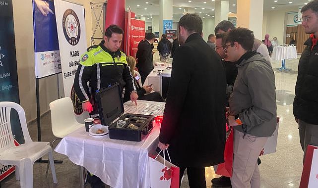 Trafik Denetleme Şube Müdürlüğü’nce Kafkas Üniversitesi Ahmet Arslan Kongre ve Kültür Merkezi’nde gerçekleştirilen etkinlikte, trafik ekipleri tarafından öğrencilere trafik denetimlerinde kullanılan radar, alkolmetre, hız ölçüm cihazları, reflektörler ve diğer trafik ekipmanları tanıtıldı. Araç ve gereçlerin kullanım amaçları ile trafikteki önemi hakkında öğrencilere detaylı bilgiler verildi.