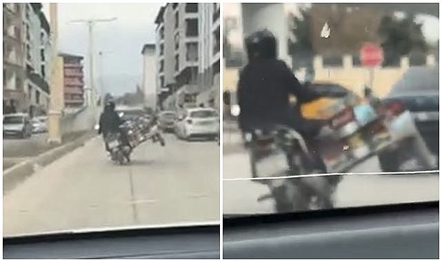 Olay, Rüstempaşa Mahallesi'nde meydana geldi. Edinilen bilgiye göre, mutfak tüpü taşıyan bir motosikletli, sepetin olduğu kısmın tekerleklerini kaldırarak trafikte seyir etti. Hem kendi canını hem de diğer sürücülerin canını atan sürücü, başka bir araçta bulunan vatandaşın cep telefonu kamerasına yansıdı. Trafikte tehlikeli hareketlerde bulunan motosikletli bir süre sonra gözden kayboldu.
