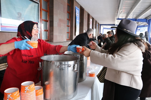 Trenden inen yolcular, Erzurum barları eşliğinde karşılandı. Misafirlere kentin simgesi olan kadayıf dolması, su böreği, sıcak çorba ve çay ikram edilirken, halk ozanları tarafından türküler seslendirildi.