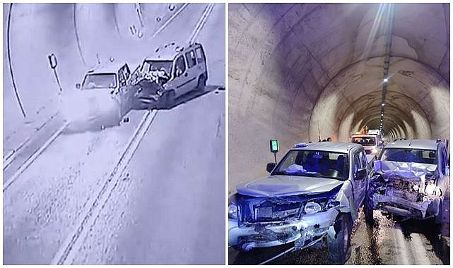 Yaralıların hayati tehlikelerinin bulunmadığı öğrenilirken, kazayla ilgili inceleme başlatıldı. Kazanın tünel içindeki güvenlik kamerasına yansıyan görüntülerinde, sürücü karşı şeride geçtiği ve karşı yönden gelen araçla çarpıştığı anlar yer aldı.
