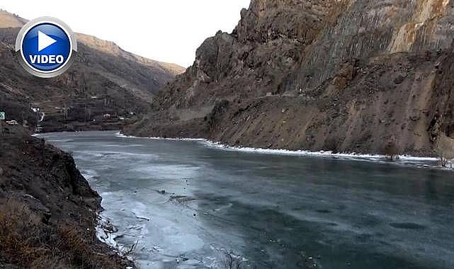 431 kilometre uzunluğa sahip Çoruh Nehri'nin yüzeyi, soğuk havanın etkisiyle yer yer buz tuttu. Çevre sakinleri de buz tutan nehir çevresinde gezintiye çıkıp, fotoğraf çektirdi.