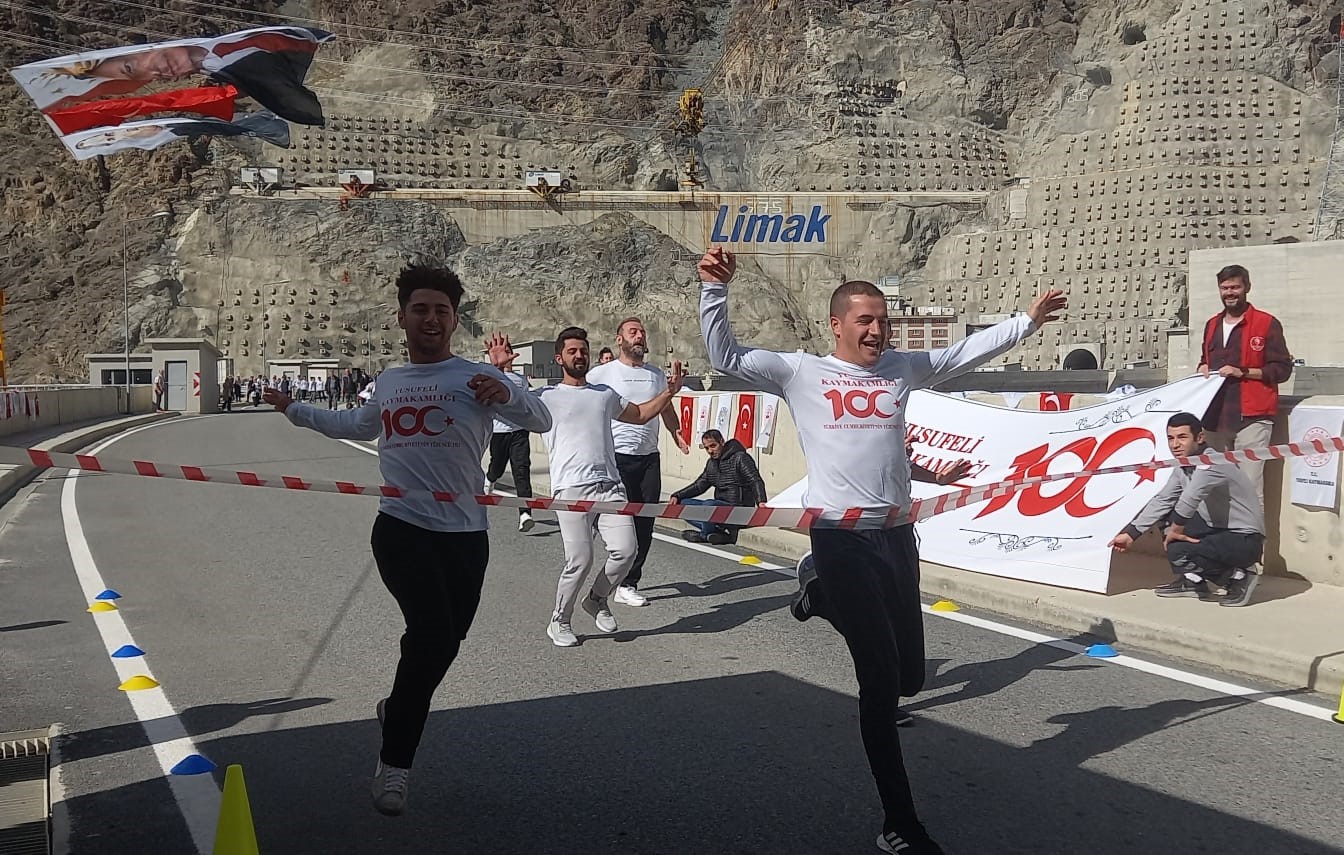 Artvin’de Çoruh Nehri üzerinde inşa edilen, kemer baraj sınıfında 275 metreyle Türkiye’nin birinci, dünyanın beşinci en yüksek barajı olan Yusufeli Barajı ve HES’te Cumhuriyetin 100. Yılı kapsamında koşu düzenlendi.