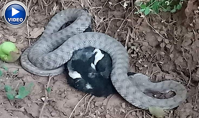 Engerek yılanı yakaladığı kargayı yedi, o anlar kameraya yansıdı.