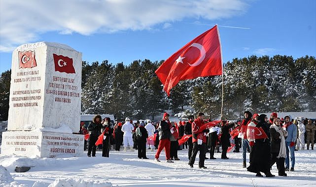 Kent merkeziyle Sarıkamış ilçesinden otobüslerle zirveye ulaşan katılımcılar, Türk bayraklarıyla yürüyerek toplanma alanına geldi. Vatandaşlar, Kızılçubuk bölgesinde şehitler anısına yapılan kardan heykellerin önünde fotoğraf çektirdi.
