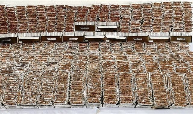 Yapılan aramada, satışa hazır halde 1986 paket içinde içi tütün doldurulmuş 39 bin 720 makaron ele geçirildi.