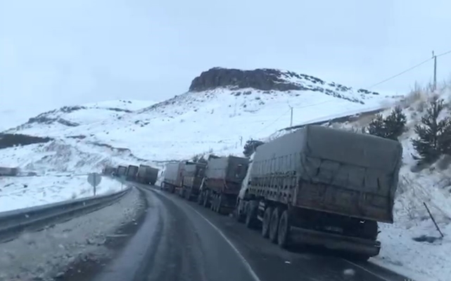Ardahan'da etkili olan kar yağışı ve buzlanma nedeniyle Ilgar Dağı geçidinde ağır tonajlı araçlar uzun kuyruklar oluşturdu. Karayolları ekipleri, yolların açılması için çalışmalara devam ediyor.