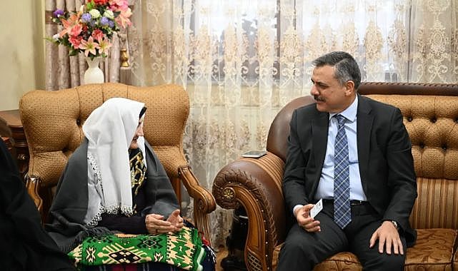 Vali Çiftçi Şahteret Nine'nin elini öperek hayır dualarını aldı.