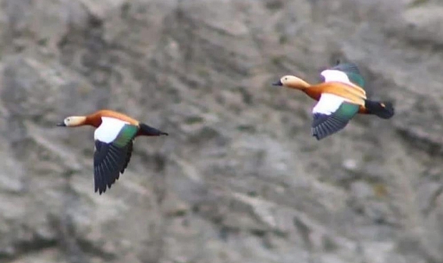 Doğada nadiren görülen ve çekingen olan 'angut' ya da 'angıt' kuşları, Erzurum’un Uzundere ilçesinde vatandaşlar tarafından görüntülendi.