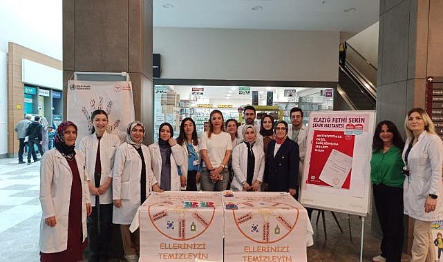 Elazığ’da 18-24 Kasım Dünya antimikrobiyal farkındalık haftası ve 18 Kasım Avrupa antibiyotik farkındalık günü etkinliği düzenlendi. Fethi Sekin Şehir Hastanesi'nde Enfeksiyon Kontrol Komitesi tarafından düzenlenen etkinlikler kapsamında; Enfeksiyon Hastalıkları ve Klinik Mikrobiyoloji Uzmanı Doç. Dr. Müge Özgüler tarafından sağlık çalışanlarına yönelik eğitim verilirken, hastane girişinde de stant kuruldu. Stantlarda vatandaşlara antibiyotik kullanımı ile ilgili bilgilendirmelerde bulunuldu.