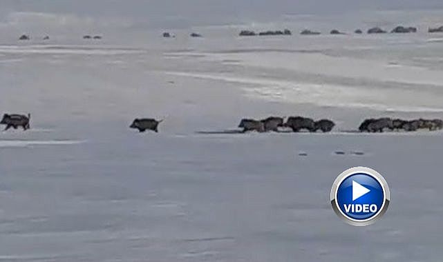 Kars’ın Akyaka ilçesine bağlı Küçükdurduran ve Sulakbahçe köylerinde sabah erken saatlerde ortaya çıkan domuz sürülerinin, koşarak karlı arazide ilerlediği görüldü. Domuz sürüleri Tokay Kurtbaş ve Mahsuncan Işık, tarafından cep telefonu kameralarıyla kaydedildi. Görüntülerde, kalabalık domuz sürüsünün karla arazilerde ve dağlık bölgede hızla kaçtığı anlar yer aldı.