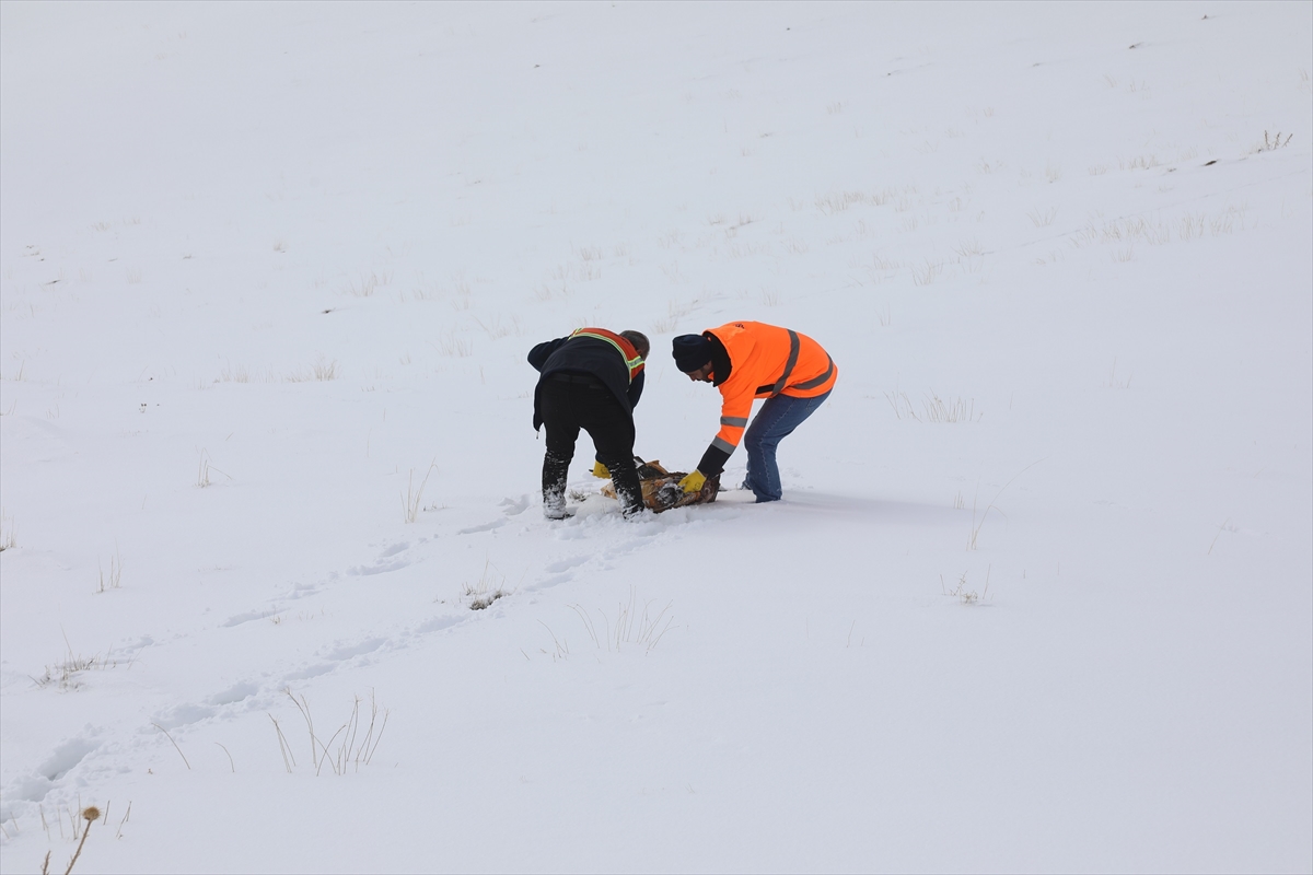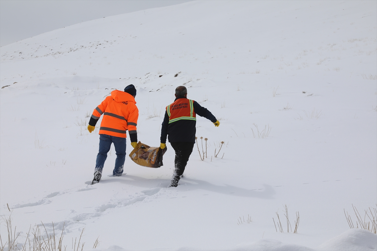 Belediye çalışanları, hava sıcaklığının düşmesi ve arazinin karla kaplı olması nedeniyle yem bulmakta güçlük çeken yaban hayvanları için çalışma başlattı.