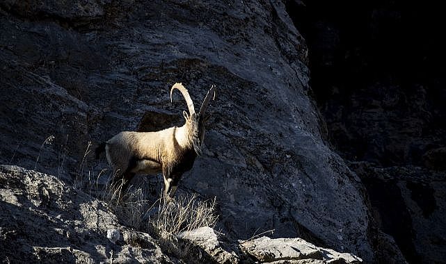 Özellikle Munzur Vadisi Milli Parkı'nı mesken tutan yaban keçileri, arazide meşe dalları ve kuru otlarla beslenirken kayıt altına alındı.