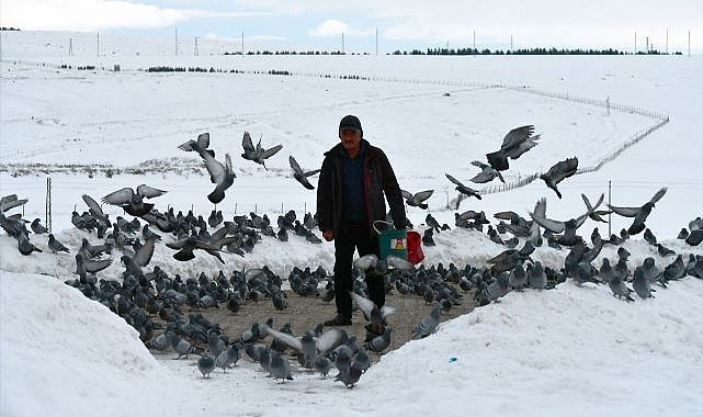 "Beş yıldır bu güvercinler için harman zamanı buğday stokluyorum. Yılda en az 2 ton buğday alıyoruz. Bazı vatandaşlar da 'sevabımız olsun' diye yardım ediyorlar. Ben bu sevdaya tutuldum, devam ediyorum. Ömrümüz yettiğince inşallah yaparız. Kış aylarında her sabah kalkar, kar yağmışsa küreme yapar sonra kuşların yemlerini veririm, günde 10-12 kilo buğdayla yemliyorum."