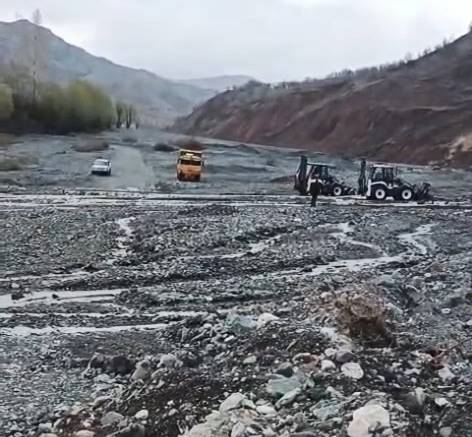 Yaşanan sel olayının ardından İl Özel İdaresi ekipleri, bölgeye giderek kapanan yolun açılması için çalışma başlattı.