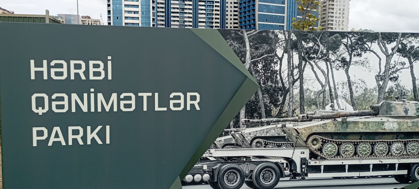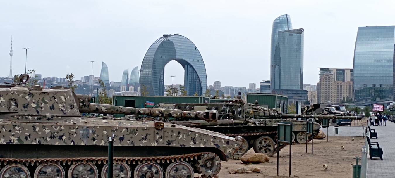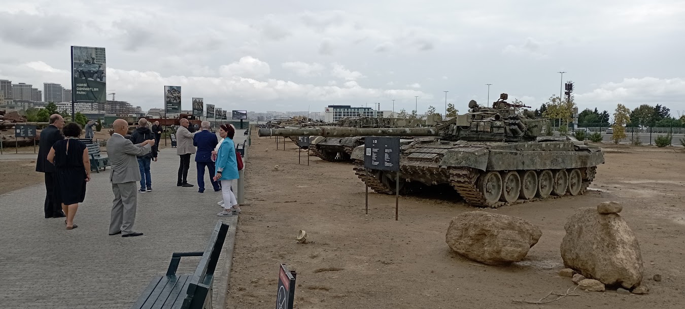 *Azerbaycan, son Ermenistan savaşında zafer kazanırken elde ettiği ganimetleri (Uçak, tank vs) büyük bir gururla Hazar Denizi kenarında, sergiliyor. Beş futbol sahasına denk gelen alanda Azerbaycan’ın Rus malı kocaman mermilerden yaptığı aydınlanma ve temizlik araçları dikkat çekiyor.
