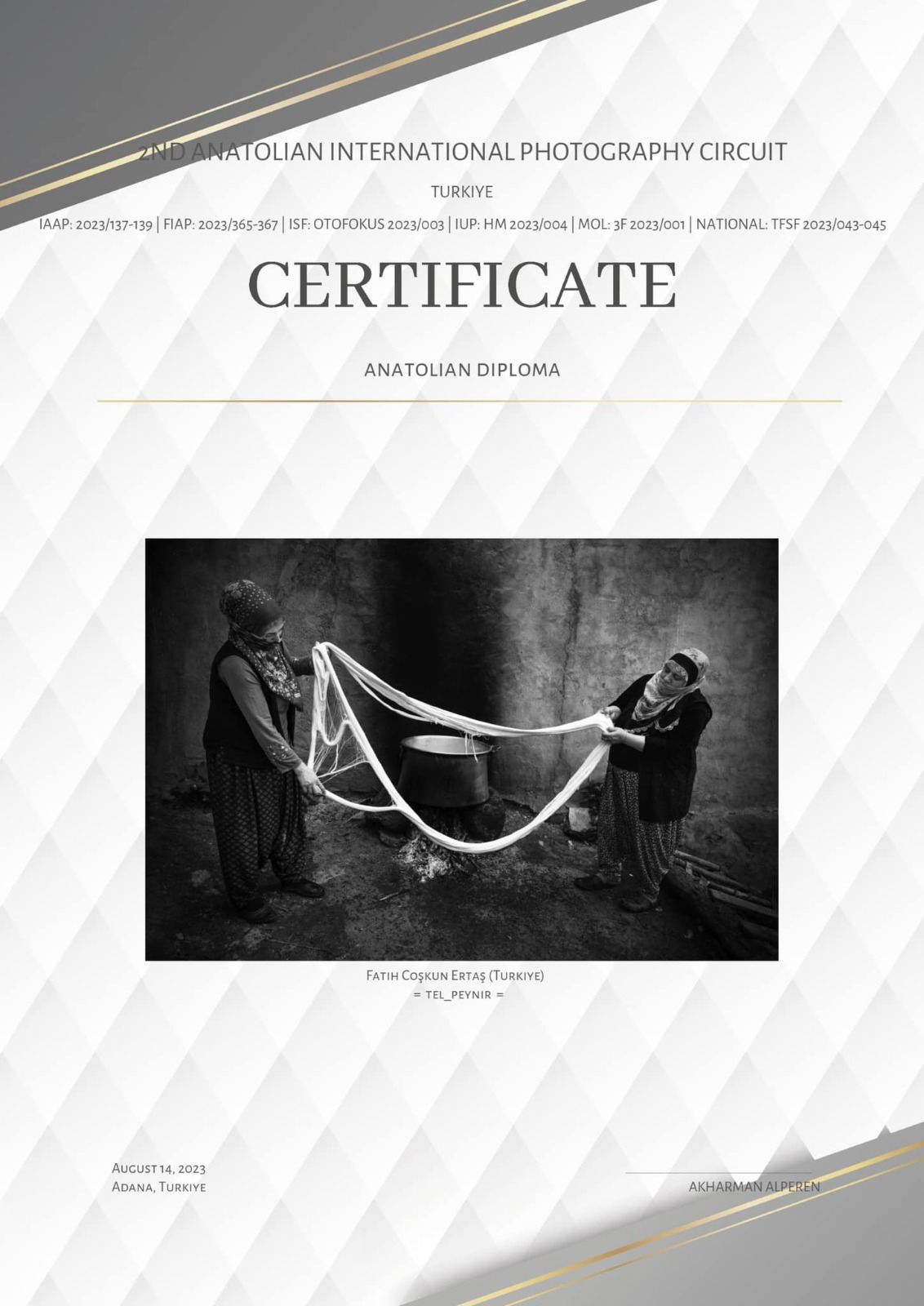 İşte bu üyelerden biri de Atatürk Üniversitesi İktisat Fakültesi İşletme Bölümü öğretim üyelerinden Prof.Dr.Fatih Coşkun Ertaş.. Fotoğrafçılık geçmişi eski olmamasına rağmen, görünen o ki, gözü iyi. Öyle çektiği fotoğrafları var ki, katıldığı bir çok ulusal ve uluslararası yarışmada ödüle bile ulaşmış. ‘’Ben daha çok Erzurum’un değerlerinin yaşatılmasını hedefleyerek fotoğraf çekiyorum’’ diyen, ‘davası ve de kavgası olan’ Ertaş hoca, geçen yıl Tekman’ın Madrek köyünde çektiği bir fotoğraf ile prestijli bir yarışmada ödüle layık görülmüş. Civil peynir açan kadınların yeraldığı fotoğrafı ile Uluslararası bir dernekten sertifika almaya hak kazanan Ertaş hoca ile gönüldaşlarını bu kutlu yolda tebrik ediyor, başarılarının devamını diliyorum.