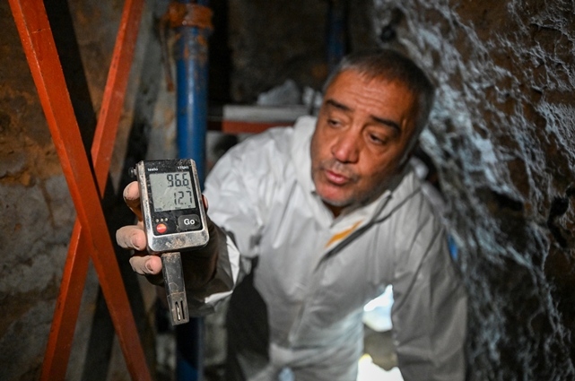 Özel kıyafetlerle girilen, nem ölçerlerle nemi kontrol altında tutulan yapı grubunun su almaması için tepenin üzerine çadır kurulması için de proje hazırlandı.