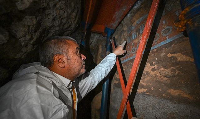 Prof. Dr. Işıklı, duvar resimlerini korumak için tünelde demir sütunlarla sağlamlaştırma çalışmaları yaptıklarını söyledi.