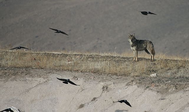 Bir süre bölgede dolaşan kurt, daha sonra ilçe çöplüğüne yöneldi. Karga sürüsünün rahatsız etmesi üzerine kurt, kısa süre sonra gözden kayboldu.