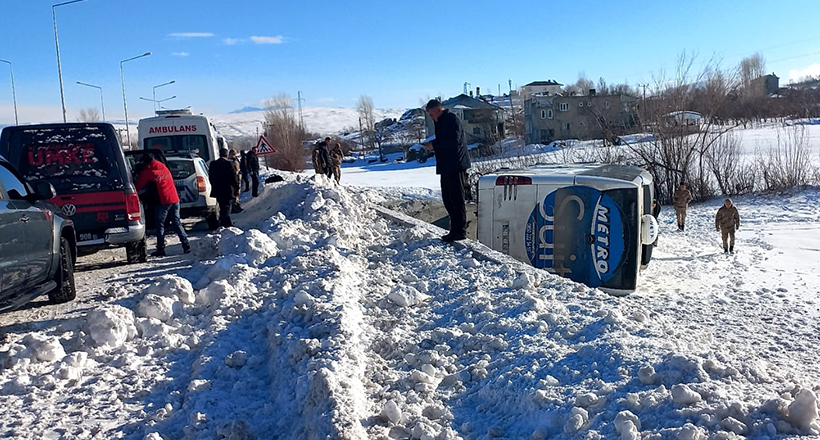 Alınan bilgilere göre kaza, sabah saat 08.50 sıralarından Van-Tatvan karayolu üzerindeki Atalan Mahallesi mevkiinde meydana geldi. Sürücüsünün ismi öğrenilemeyen Metro firmasına ait 02 DE 810 plakalı Mercedes marka yolcu otobüsü, direksiyon hakimiyetinin kaybedilmesi sonucu yoldan çıkarak devrildi. İhbar üzerine bölgeye Van Büyükşehir Belediyesi İtfaiye Daire Başkanlığı Gevaş Grup Amirliği, UMKE, 112 Acil Servis ve polis ekipleri sevk edildi. Kazada yaralanan 2’si ağır 9 kişi, ambulanslarla hastanelere kaldırıldı. Kazayla ilgili soruşturma başlatıldı. İHA–AA