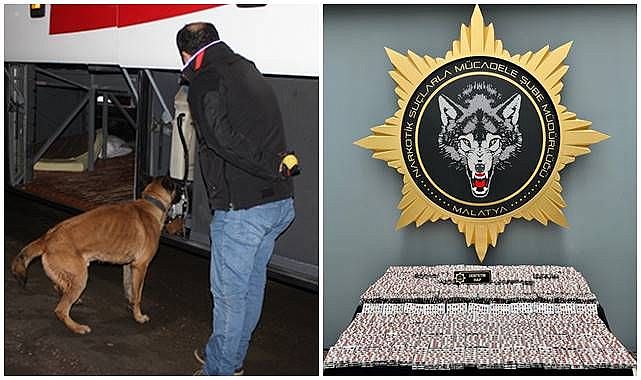 Malatya Şehit Hamit Fendoğlu Şehirlerarası Otobüs Terminali'nde bir yolcu otobüsünde yapılan aramada, 21 bin 275 sentetik ecza hap ele geçirildi.