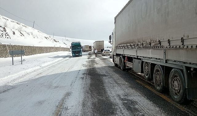 Karayolları 183. Şube Şefliği ekiplerince söz konusu alanda yapılan çalışmanın ardından tırlar kurtarıldı.