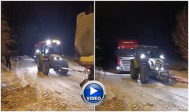 Elazığ’da geçen hafta etkili olan kar yağışı ve termometrelerin eksi 10’ları görmesi sürücülere zor anlar yaşatıyor. Bu çerçevede bir tır merkeze bağlı Uzuntarla köy yolunda buzlanma ve karın etkisiyle yolda kaldı. Bunun üzerine sürücünün yardımına köy sakinleri ve İl Özel İdaresi ekipleri koştu. İlk olarak kar küreme aracının arkasına halat bağlandı. Ardından halat iki traktöre ve son olarak tıra bağlandı. Kar küreme aracı ve 2 traktörün konvoy halindeki iş birliği ile tır, bulunduğu noktadan kurtarıldı. İlginç kurtarma yöntemi cep telefonu kamerasına yansıdı.