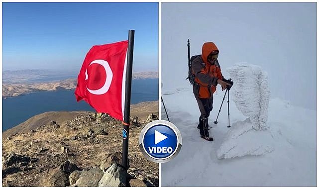 ELDAK'ın Hazar Baba Dağı'ndaki kış tırmanışında, yazın zirvede dalgalanan Türk bayrağının tamamen buz kestiği görüldü.